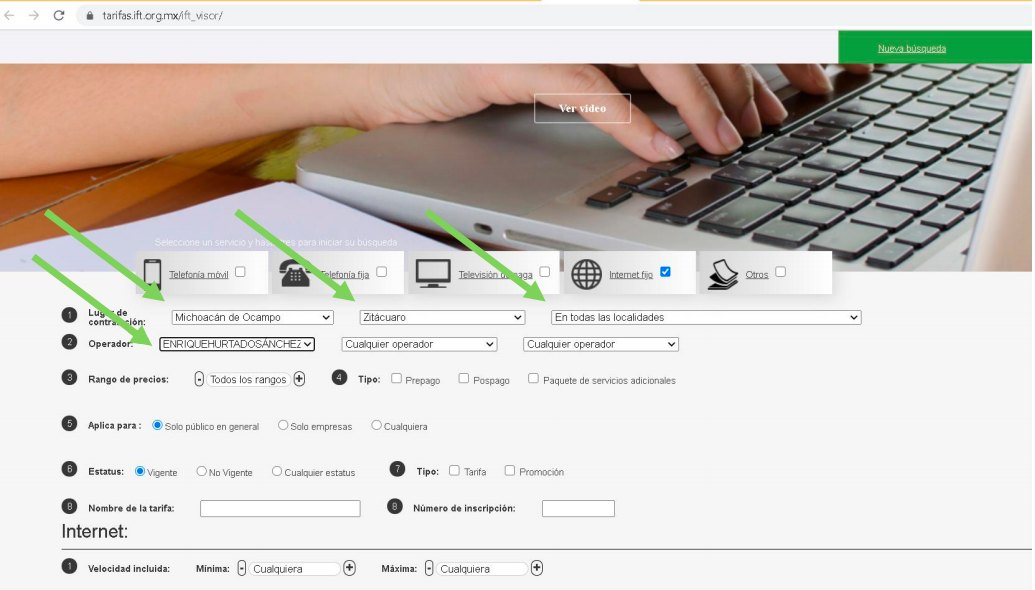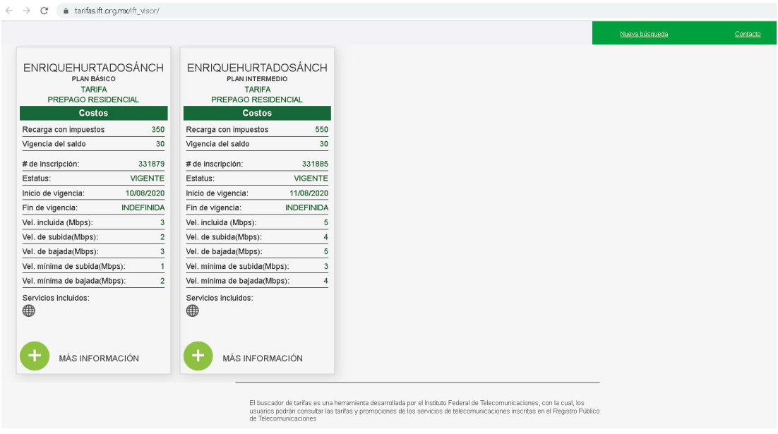 1. ENTRA A LA DIRECCION https://tarifas.ift.org.mx/ift_visor/